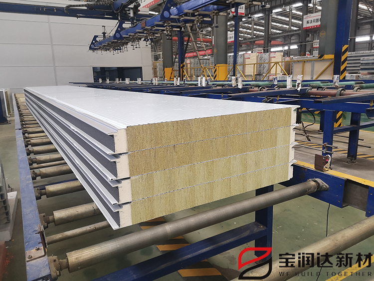 聚氨酯雙側封巖棉夾芯板采用了流水線生產工藝,從而利用了聚氨酯產品優異的防水性克服了巖棉易吸水潮解的缺點,在物理性能上有效延長了產品的使用壽命。